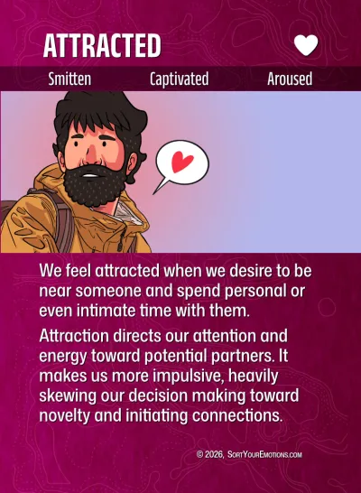 Curious Interested, Intrigued, Fascinated We feel curious when we want to know more about or are intellectually attracted to something.